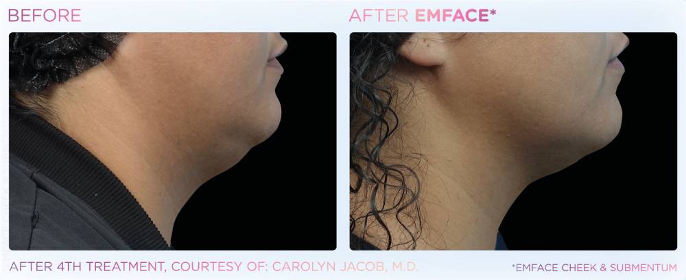 In the past, the main approach to reducing a double chin was through liposuction surgery, which involved a lengthy recovery process. Now, EMFACE Submentum offers a non-invasive solution that targets every layer from muscle to skin to decrease the appearance of a double chin.