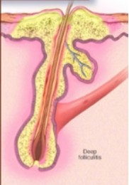 The two main types of folliculitis are superficial and deep. The superficial type involves part of the follicle, and the deep type involves the entire follicle and is usually more severe.