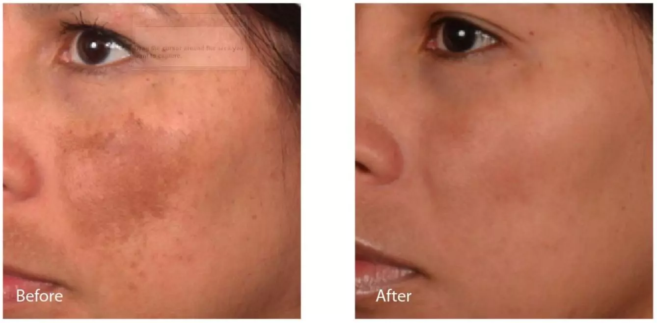 Cosmelan/Dermamelan works as a product that reduces your surface pigment through its peel procedure. This peel procedure is then followed by a special skin care routine that will help significantly reduce the pigment over the next three months. This method treats hyper pigmentation by targeting melanin overproduction and reducing it from the melanocyte itself. Cosmelan/Dermamelan is a peeling treatment for pigmentation.