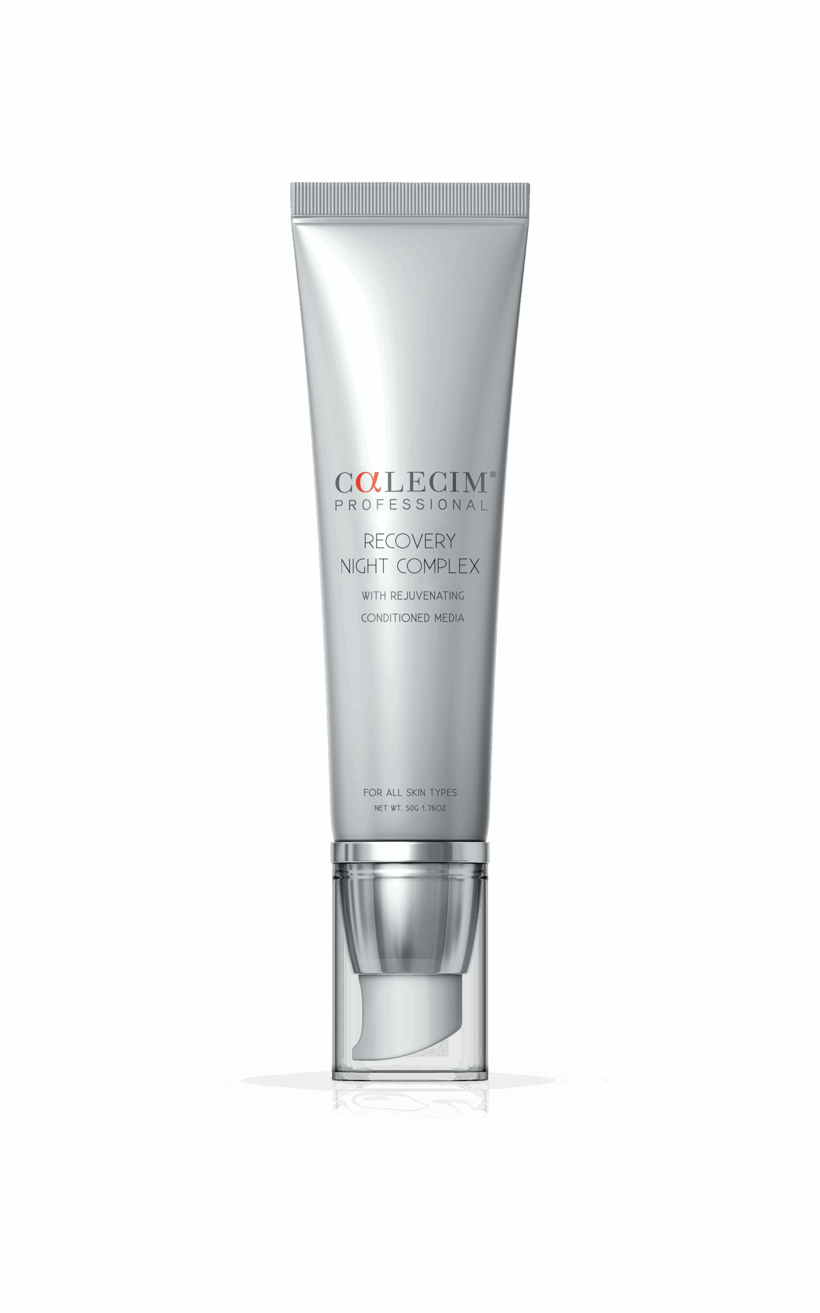 · Step 3 – CALECIM® Recovery Night Complex – Apply 5 pumps of gel to cover all facial, extending past the neck and jawline if necessary. You can apply the professional CALECIM® Serum before the CALECIM® Recovery Night Complex
