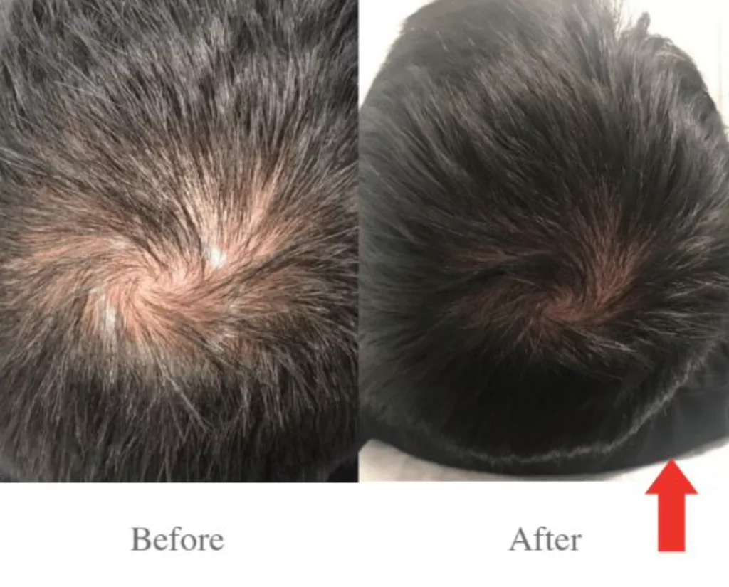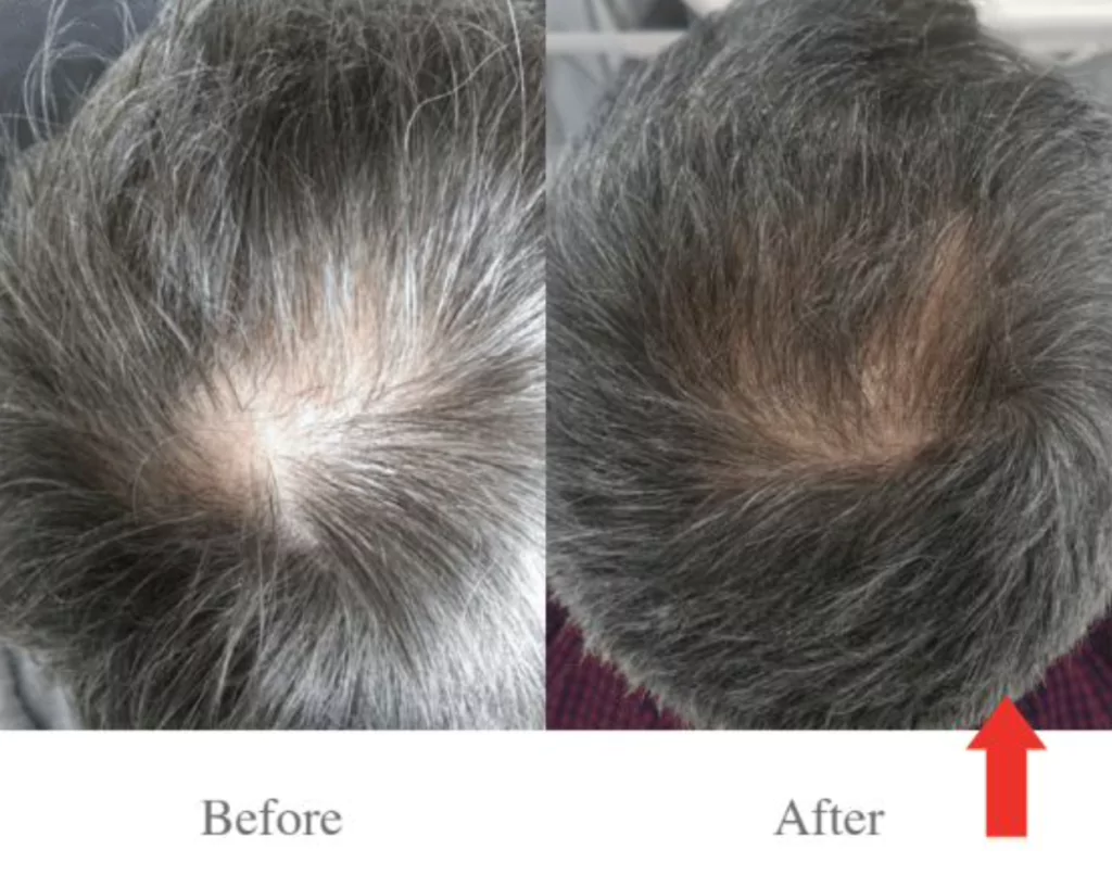 Stages 1-2 (less severe cases), you may see regrowth as early as 2-4 weeks of beginning treatment. Recommended treatments are 6 in total once a week. Followed by 1 treatment per month for 3-months.
